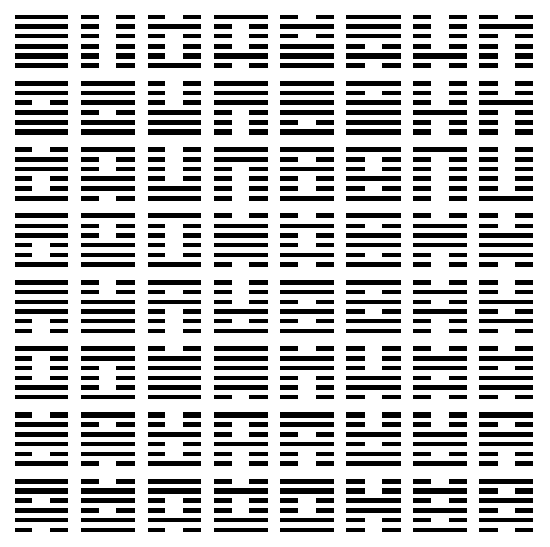 Com ens explica el sinòleg Richard Wilhem en la introducció a la seva traducció del I Ching, la disposició i ordre del llibre pot ser molt variada en les edicions xineses. Es a dir no hi ha un ordre fixe, però inclús en els hexagrames l’ordre de disposició i correlació pot ser mol variada. L’ estudi d’interpretació i traducció del llibre s’ha fet des de la base lingüística i ens dona a entendre que les variacions responen a diferents interpretacions en diferents contextos històrics. I així es, però cal apuntar també a les propietats aritmètiques i geomètriques dels hexagrames, al meu entendre encara misterioses. El seu principal caràcter més significatiu, és un llenguatge simbólic i misterios que com a codi binari condensa i codifica informació que pot ser ordenada i correlacionada de diferent forma. Entre les quals tenim ara la forma que ens proposa el sistema de Disseny Humà. Aquestes propietats matemàtiques dels hexagrames són l’autèntic misteri per descobrir.